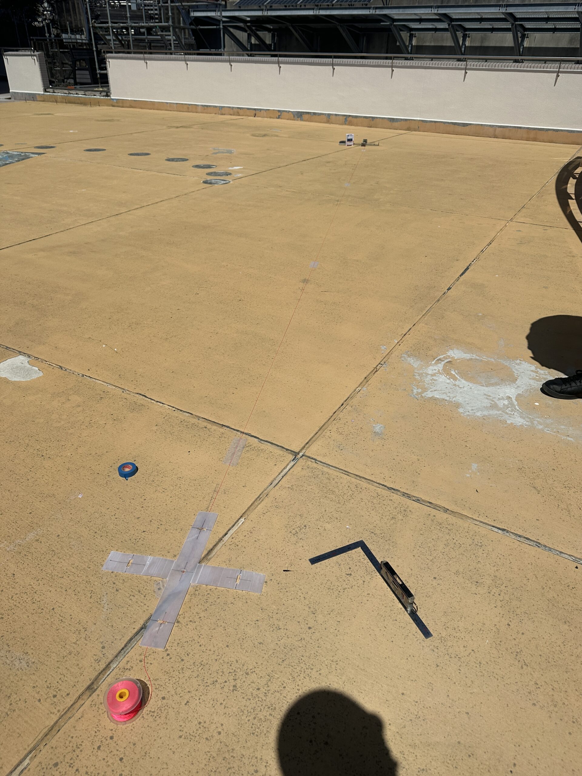 4階日時計広場は、屋上防水工事に伴い、日時計を一時撤去。日照時間を増やすことを狙って配置の転換を計画中。