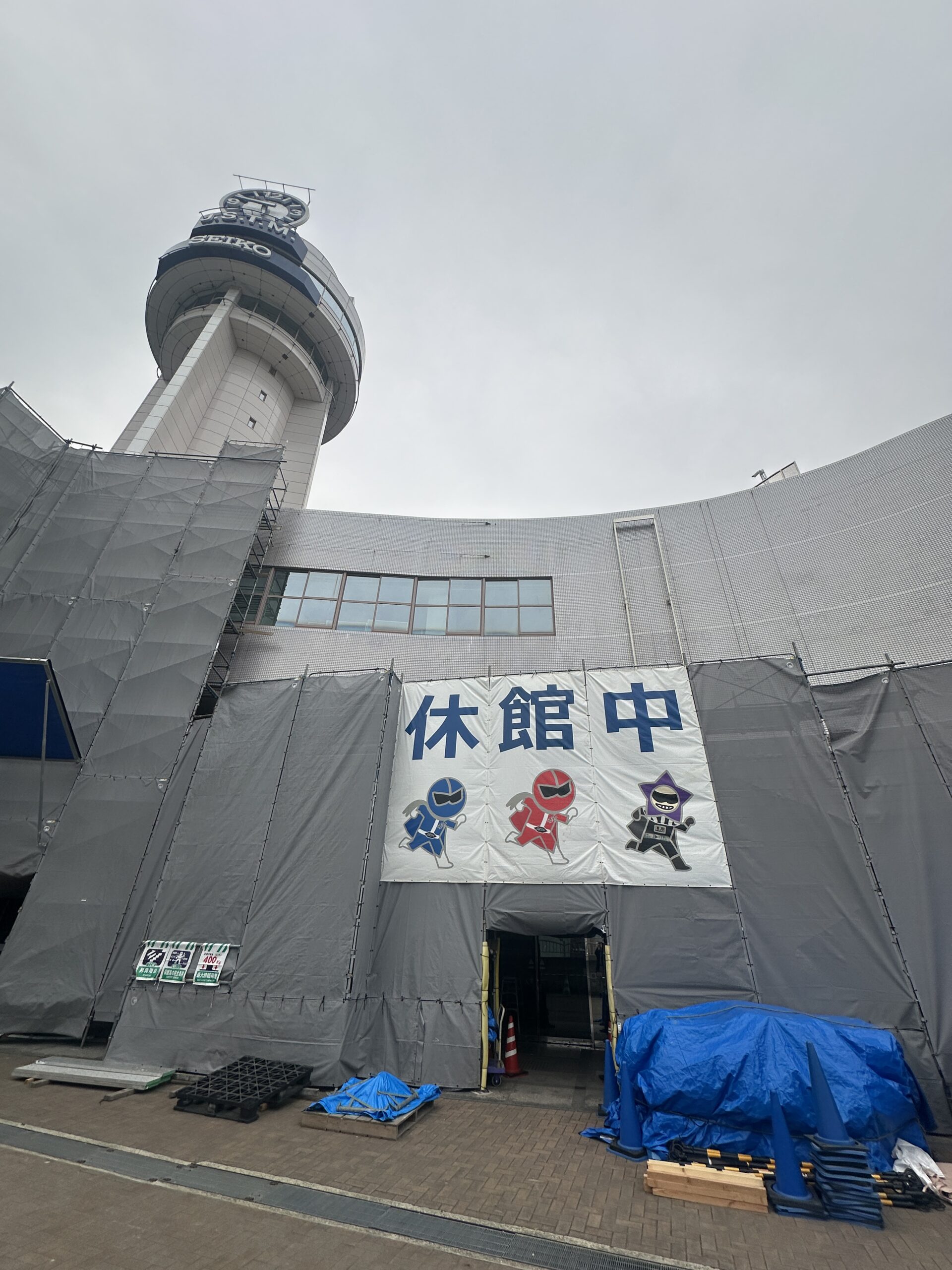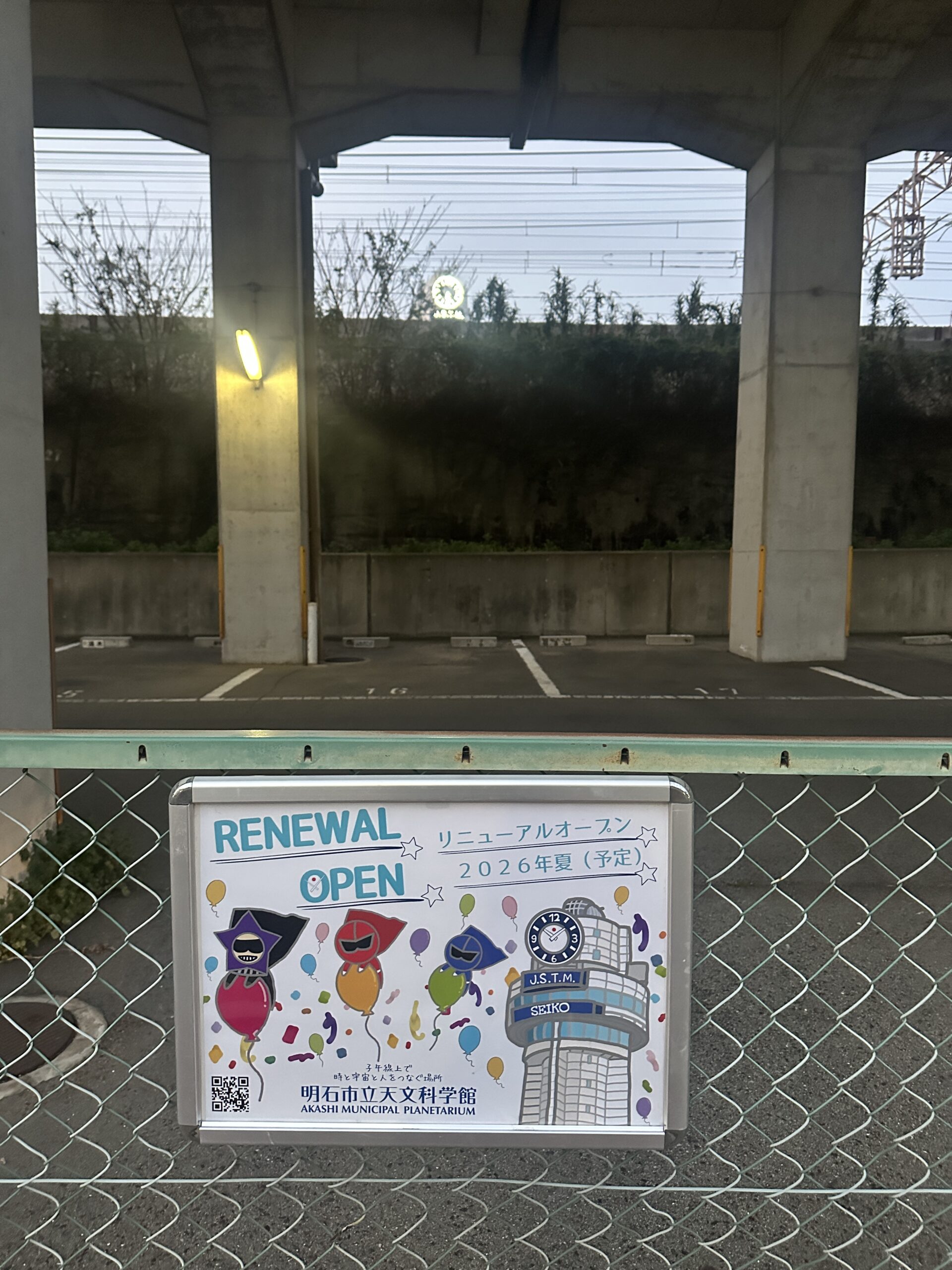 こんにちは、館長の井上です。2026年度が始まりました。今年度もどうぞよろしくお願いします。現在の天文科学館のようすの写真をご紹介します。外壁の点検修繕の足場が少しづつ低くなってきました。工事は佳境ですが、夏のリニューアルに向けてゴールもかすかに見えてきました。