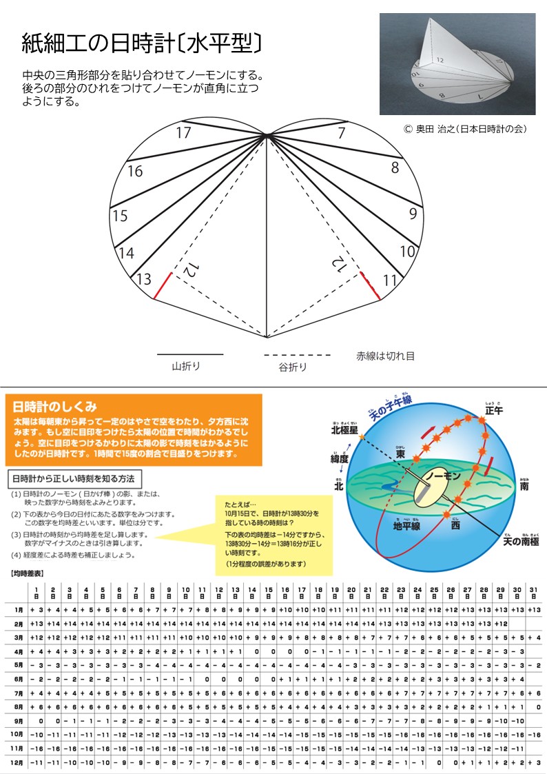 ※「水平型日時計」のペーパークラフト(型紙)をプリントアウトしてね!